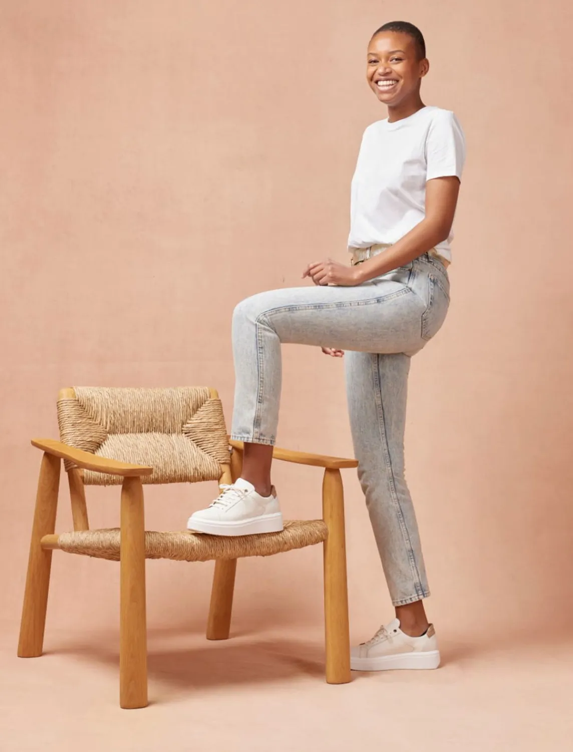 Découvrez Notre Nouveau Modèle De Sneakers Pour Femme : La Basket Chiara En Cuir Blanc Et Doré Avec Semelle Épaisse.